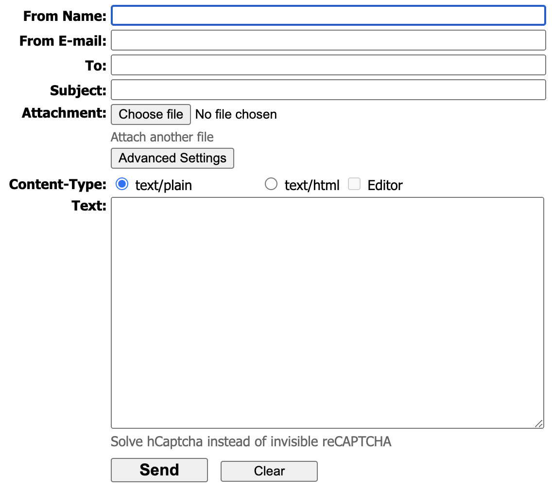 Questa è l'immagine di un form offerto da un sito online per inviare email di spoofing.