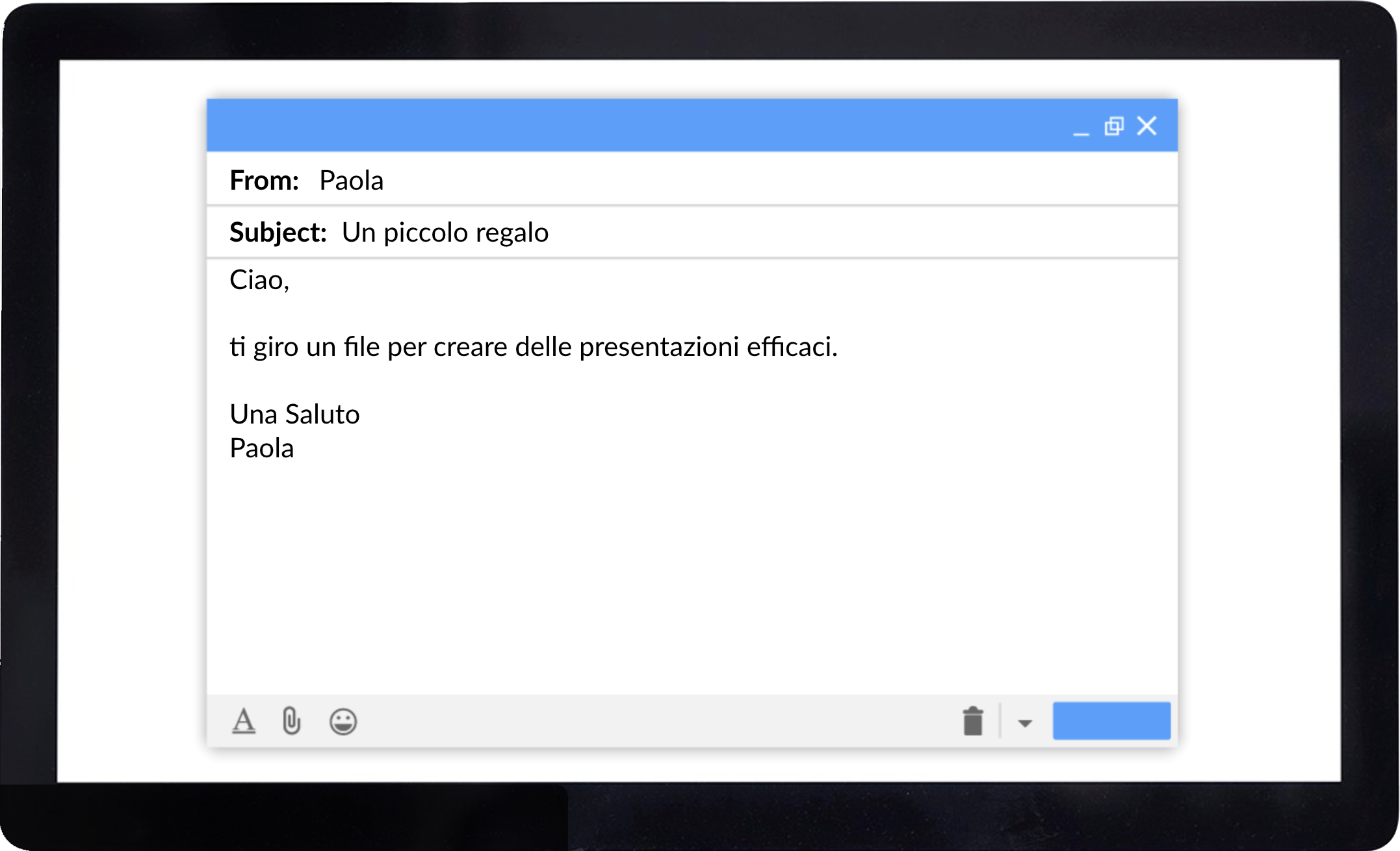 Questa è l'immagine di una email dove il mittente sembra essere un'amica di nome Paola.